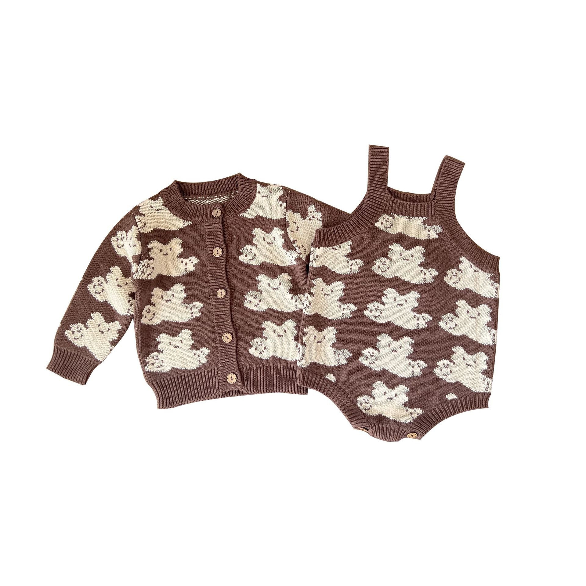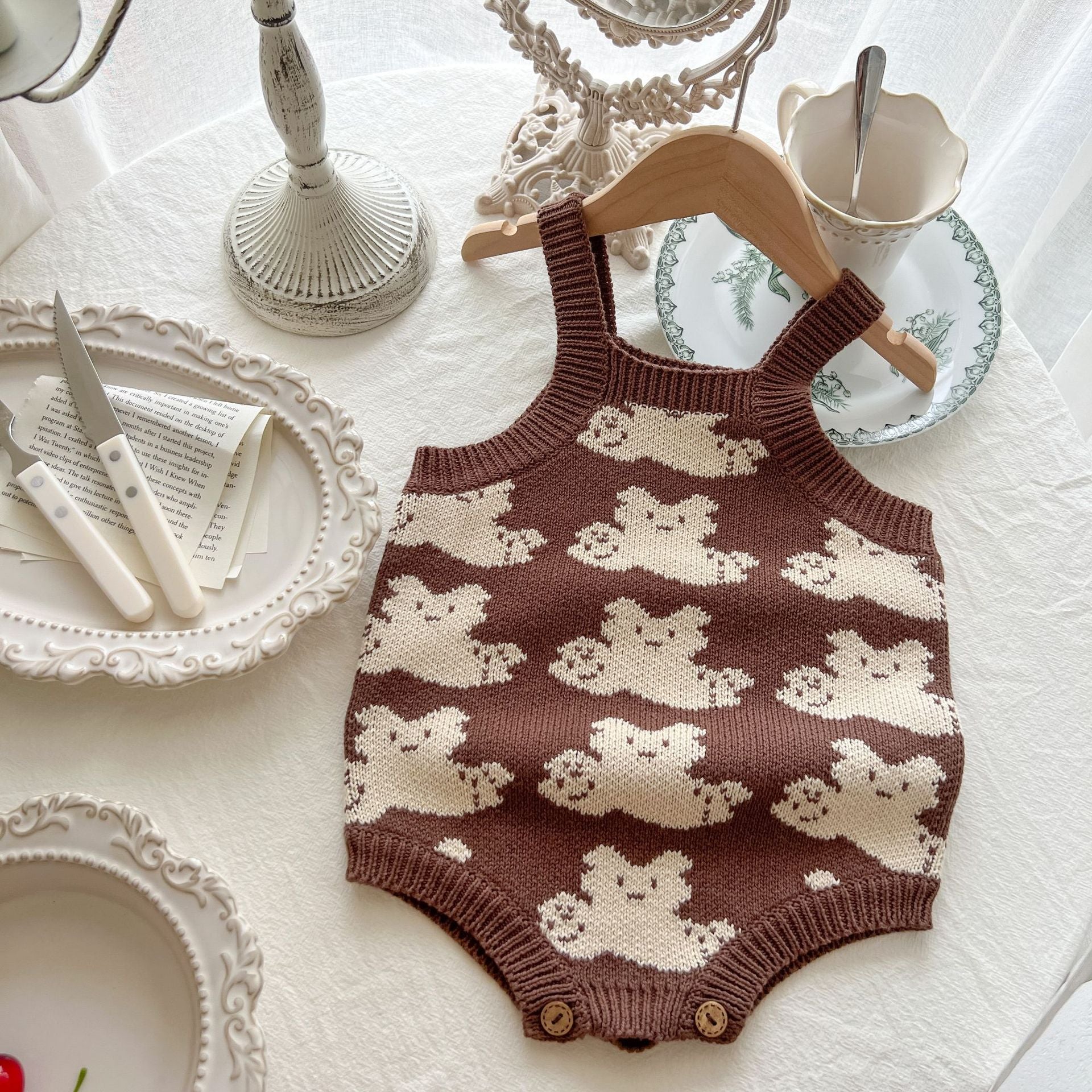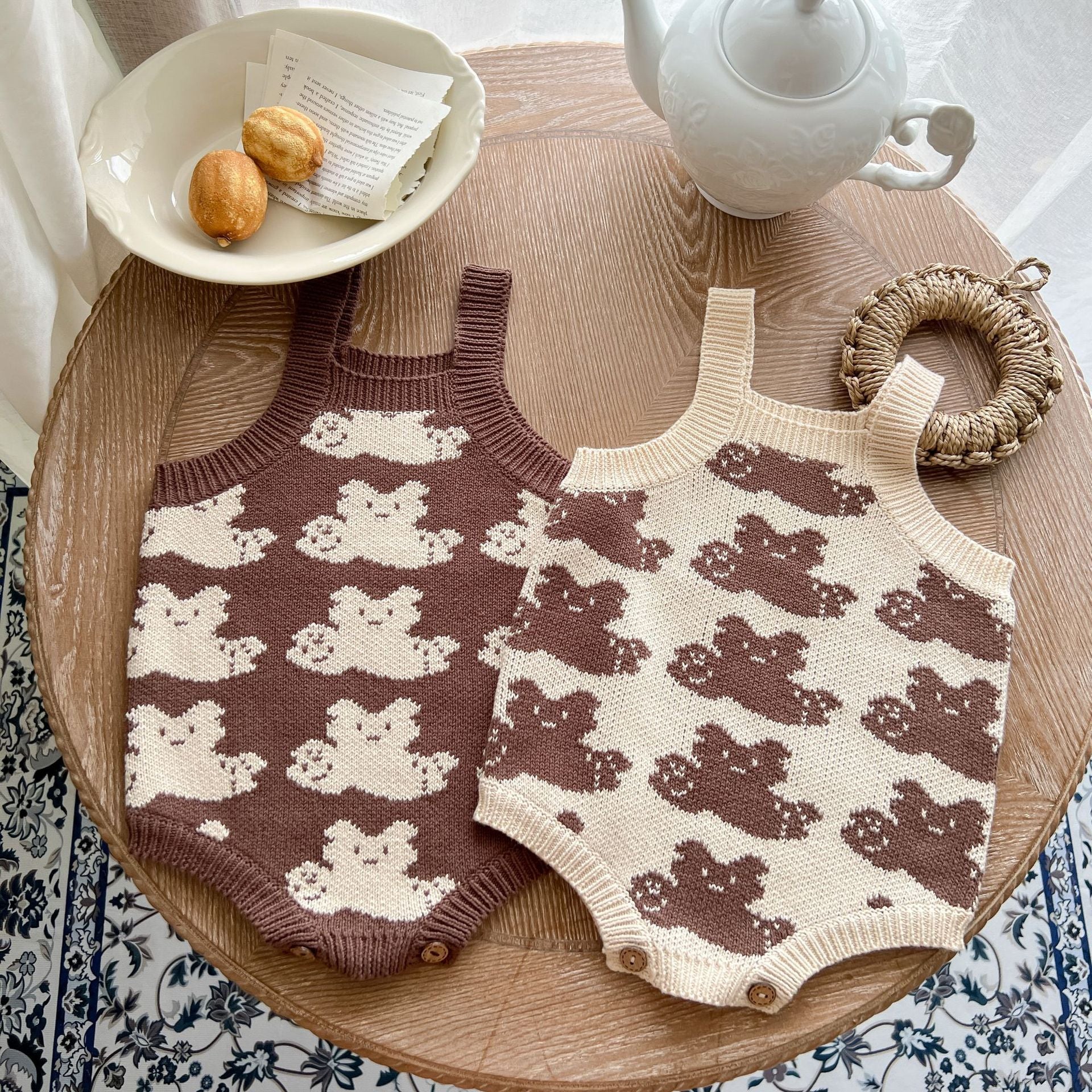 ins2022 autumn and winter baby clothes cute cartoon wool romper sleeveless romper + baby sweater cardigan jacket