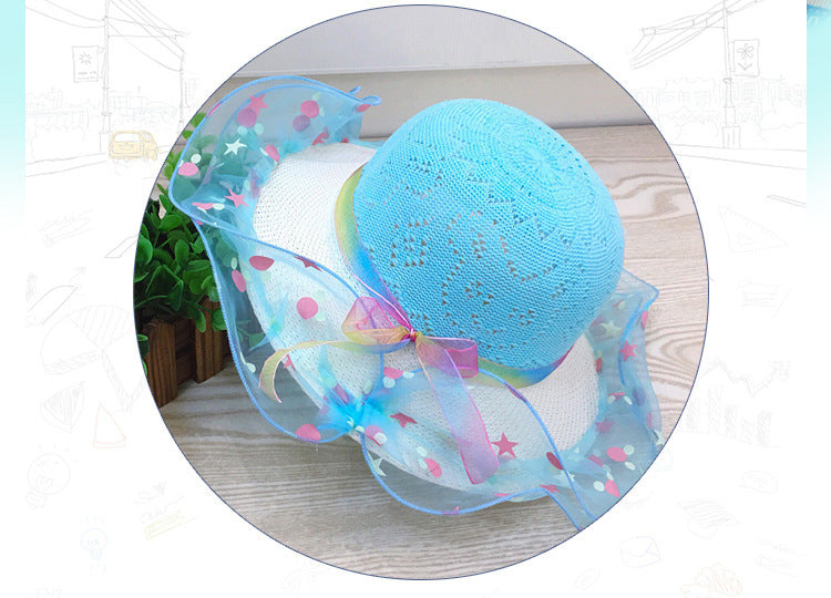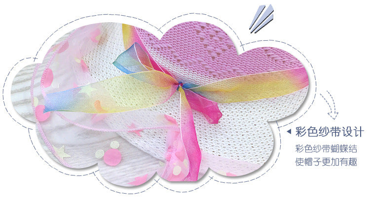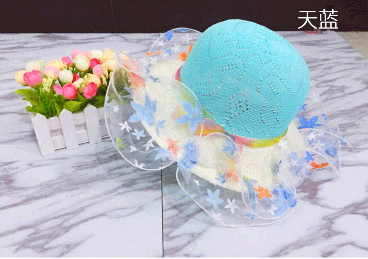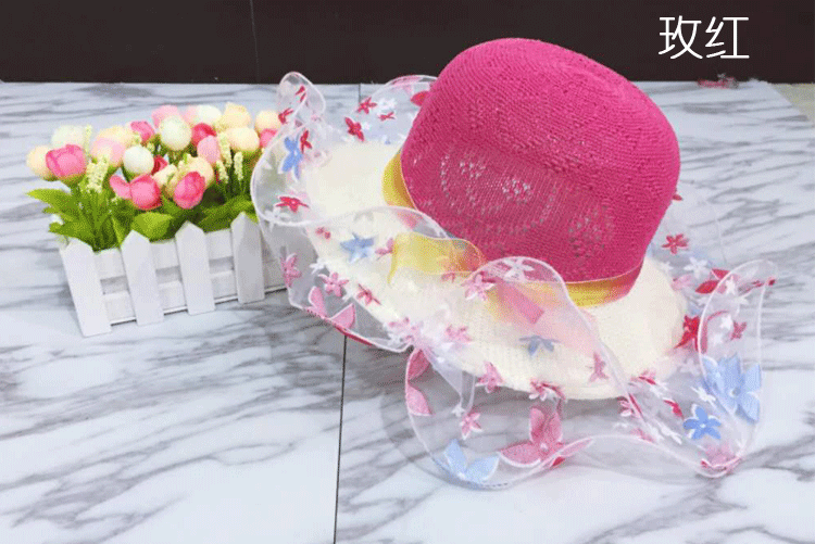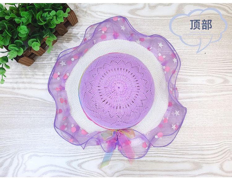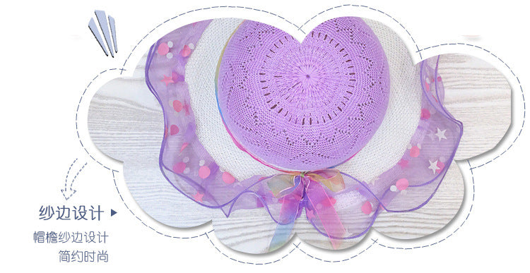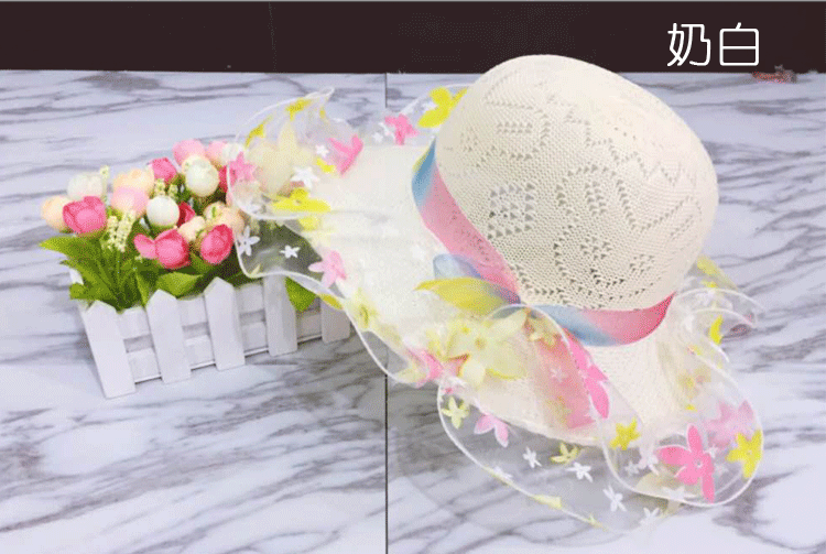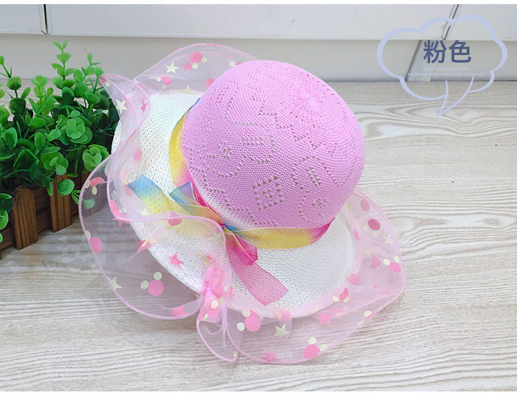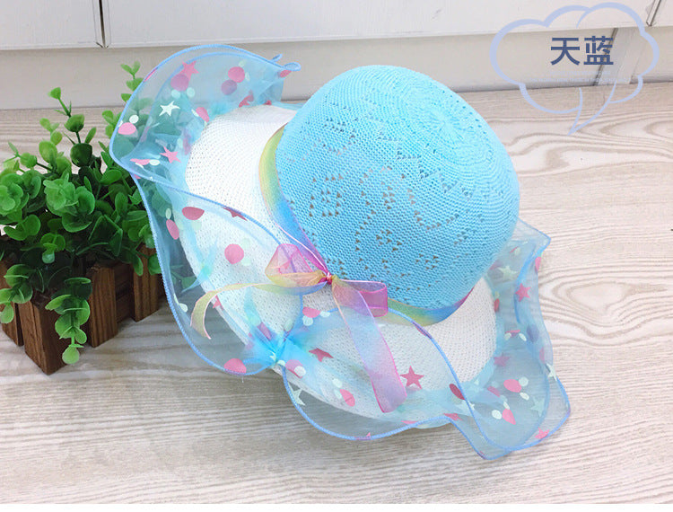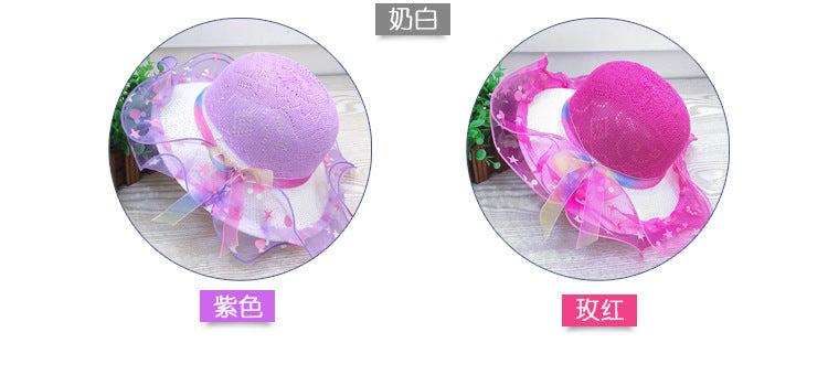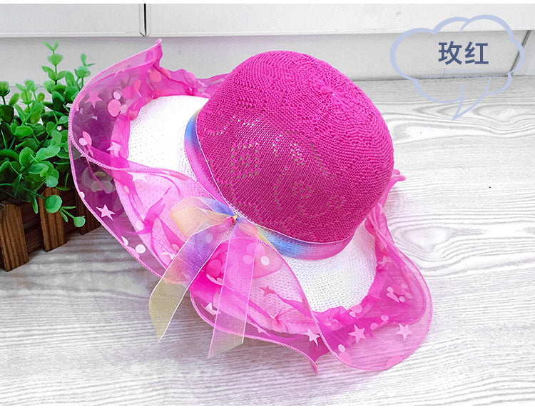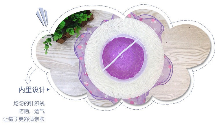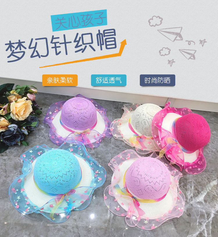 Korean new children's hat baby straw hat summer sun protection sun hat beach casual hat three-color flower knitted hat