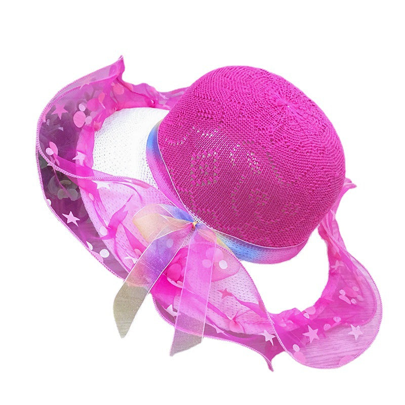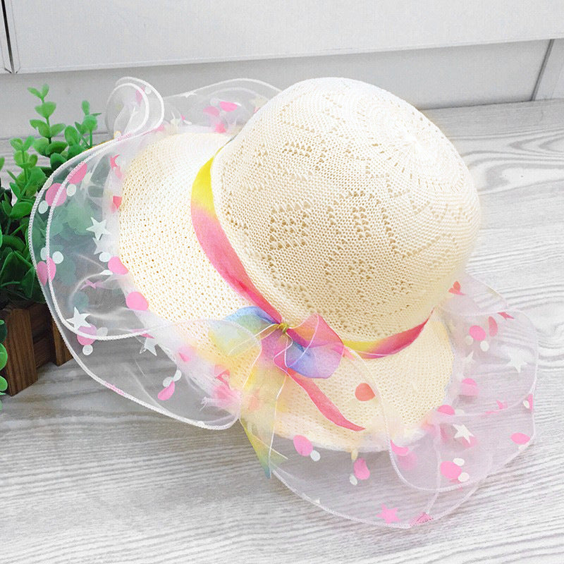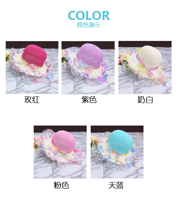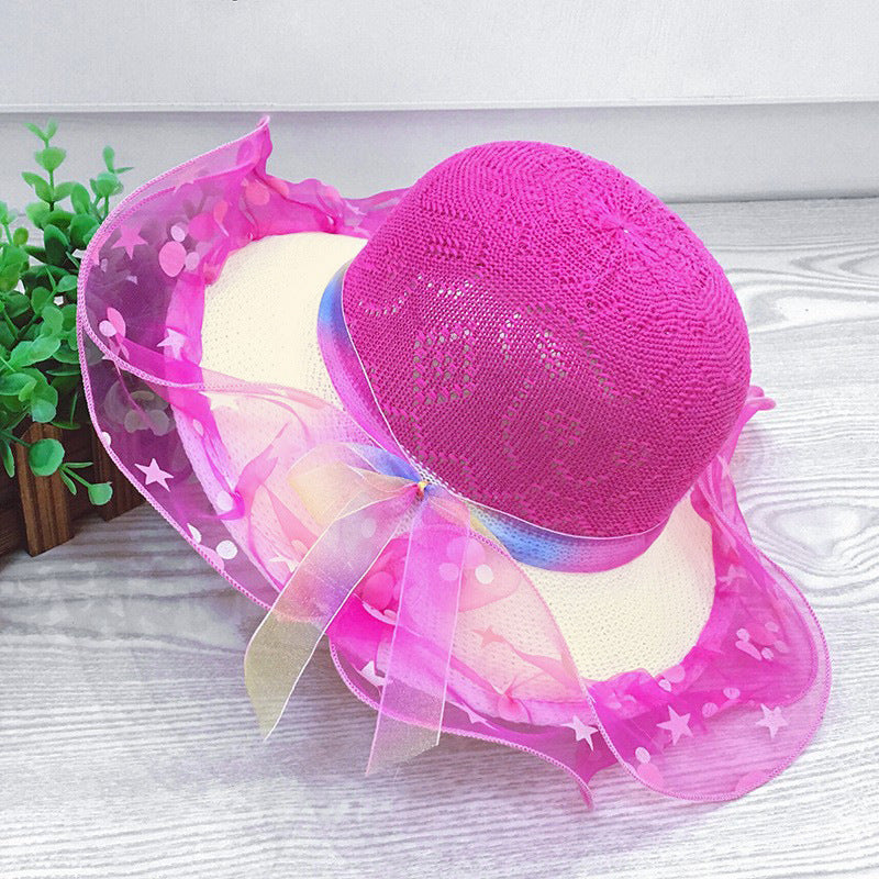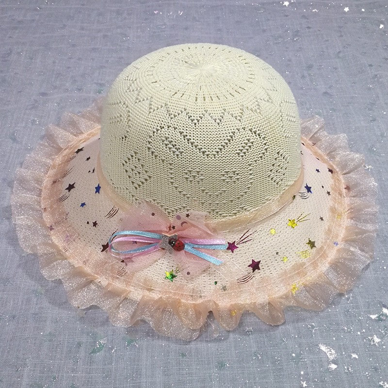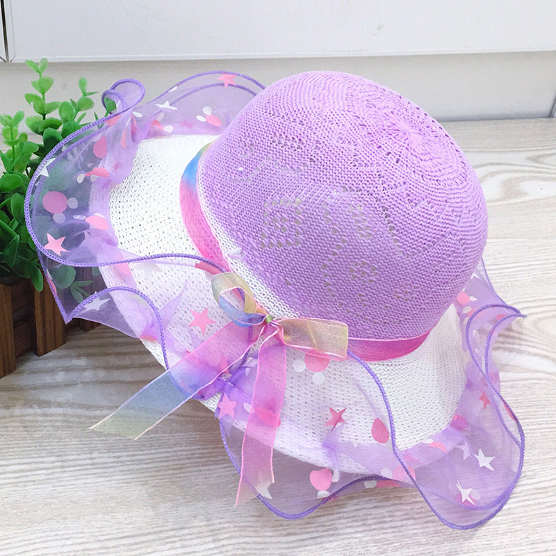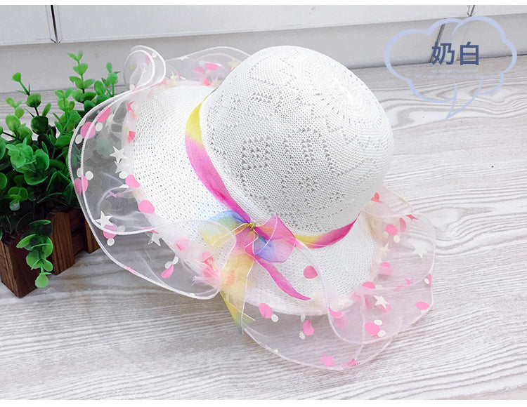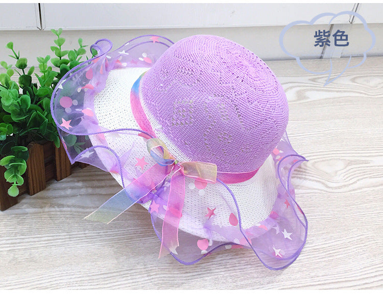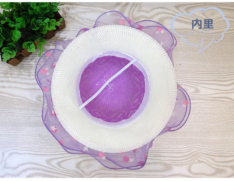 Korean new children's hat baby straw hat summer sun protection sun hat beach casual hat three-color flower knitted hat