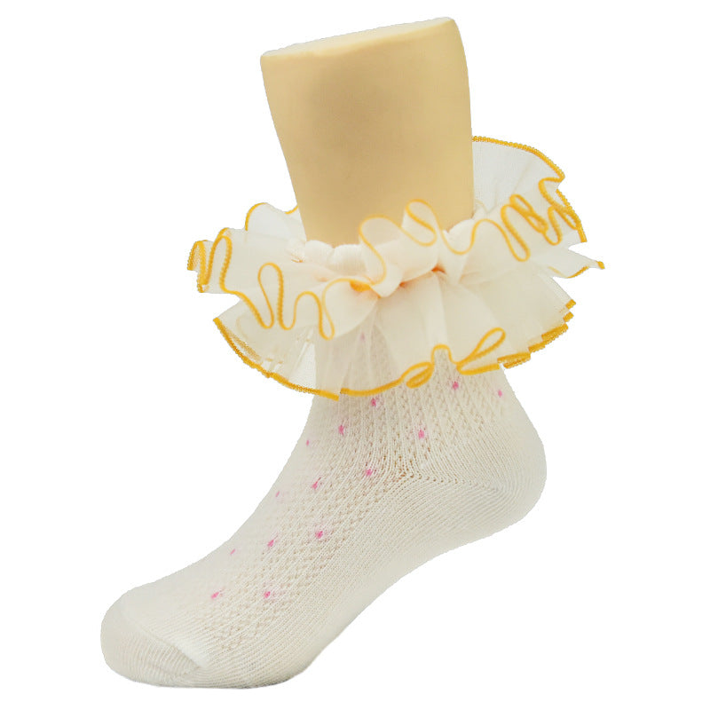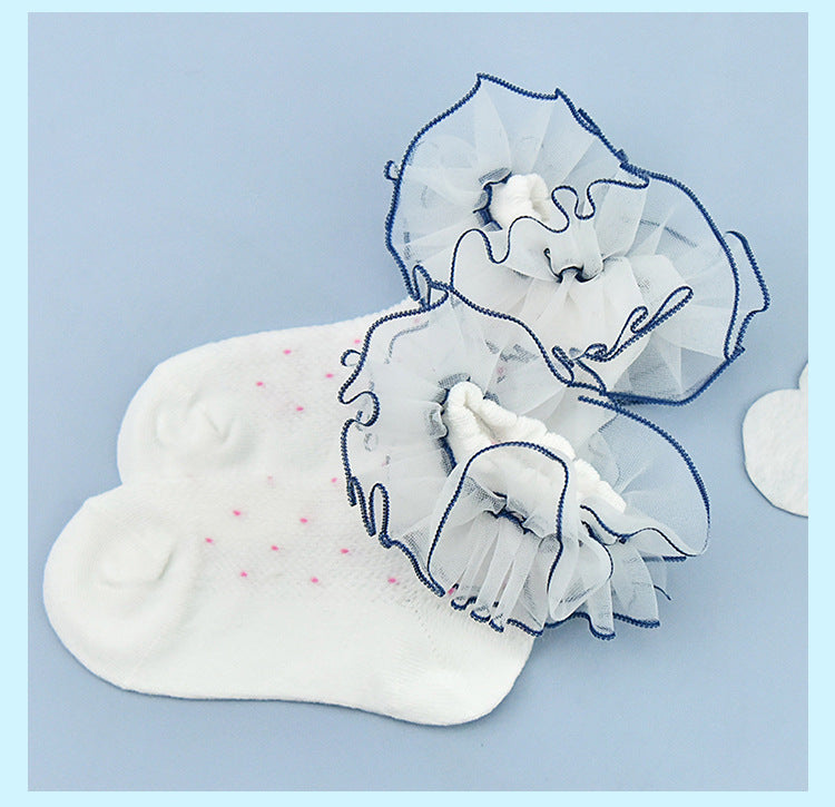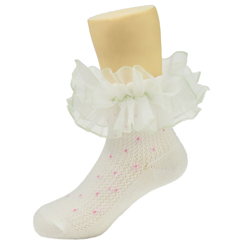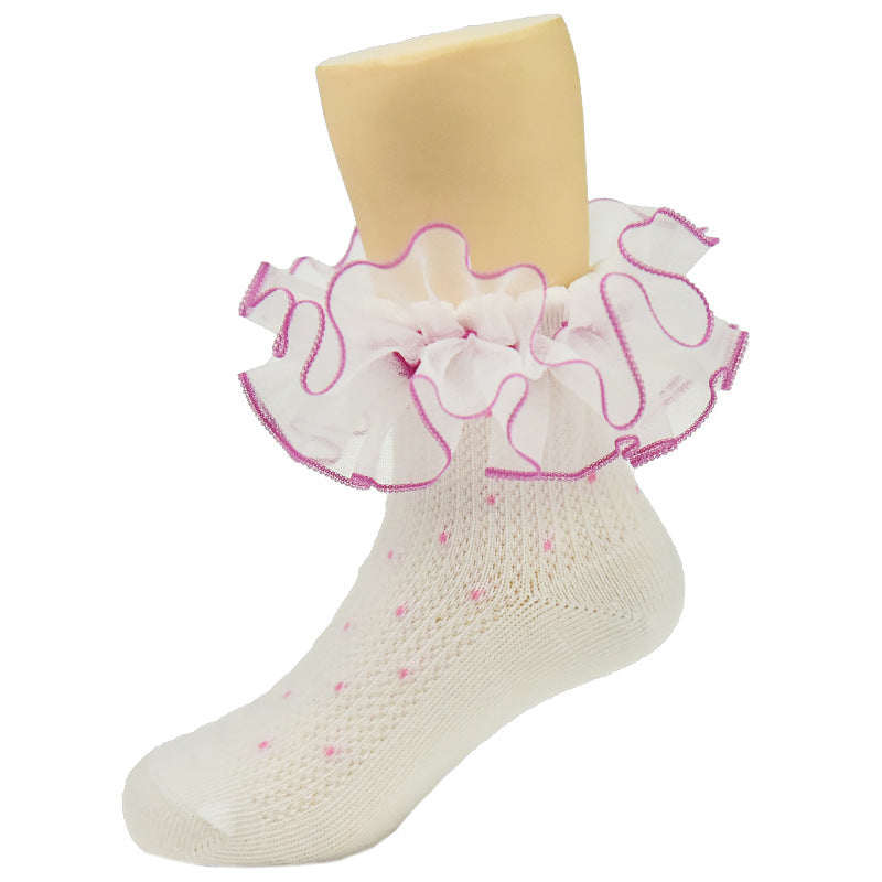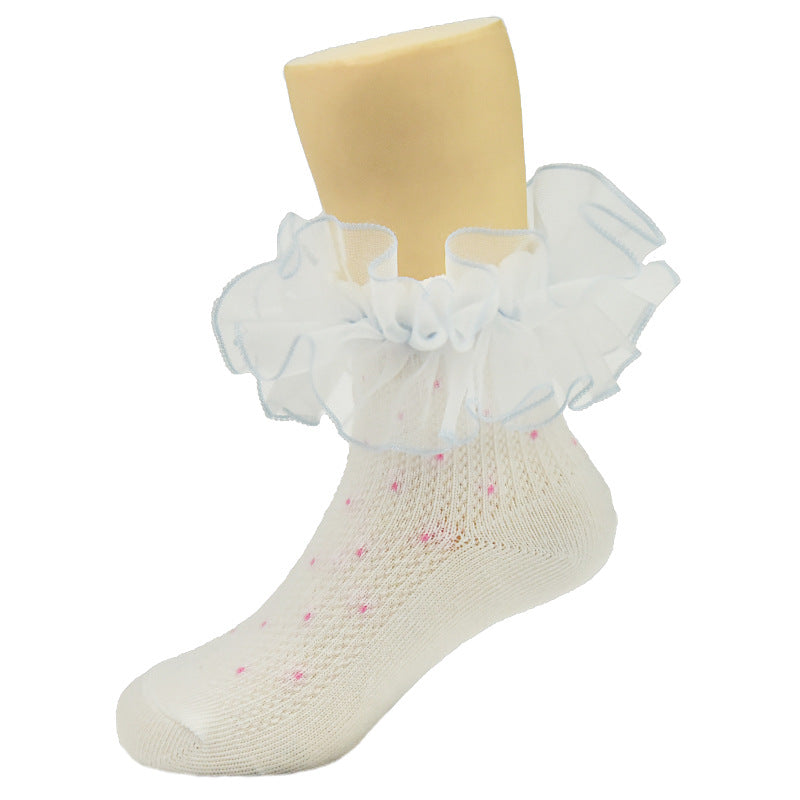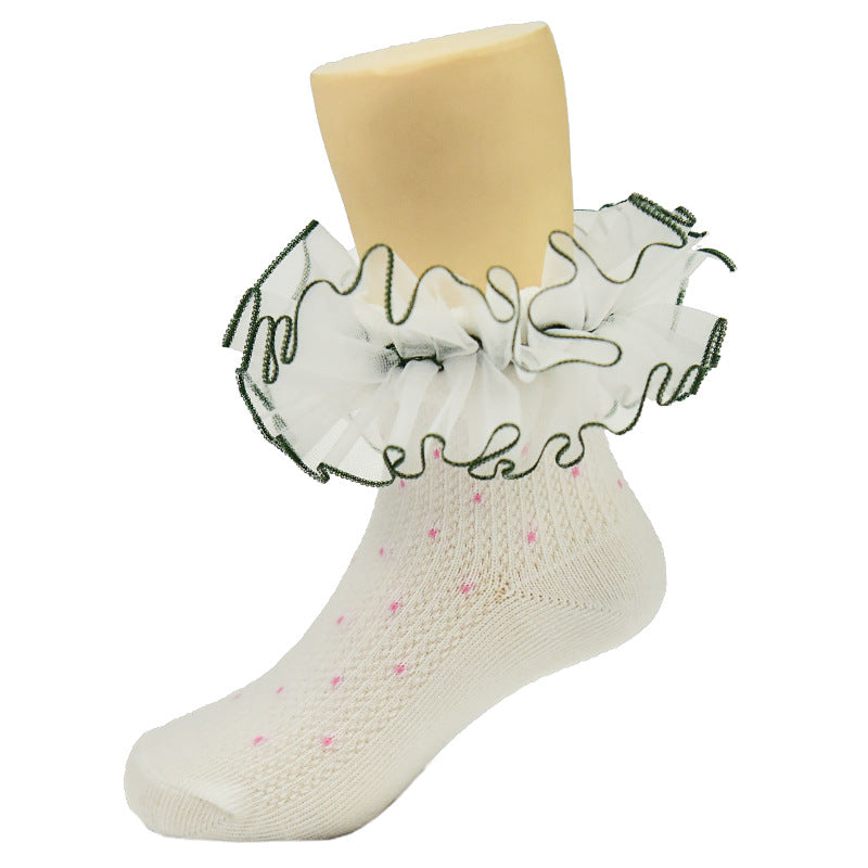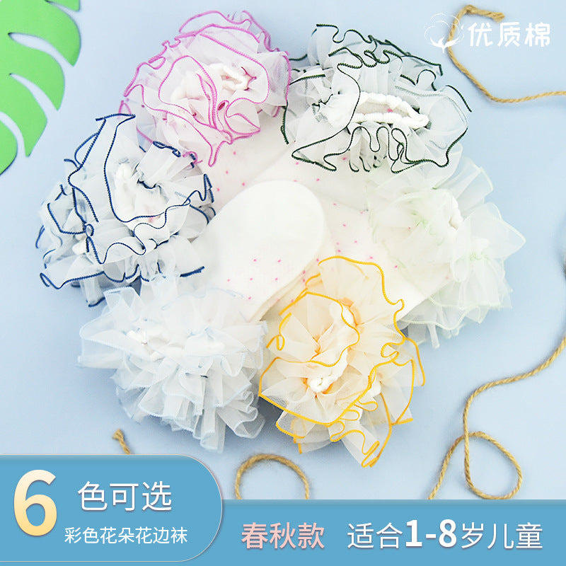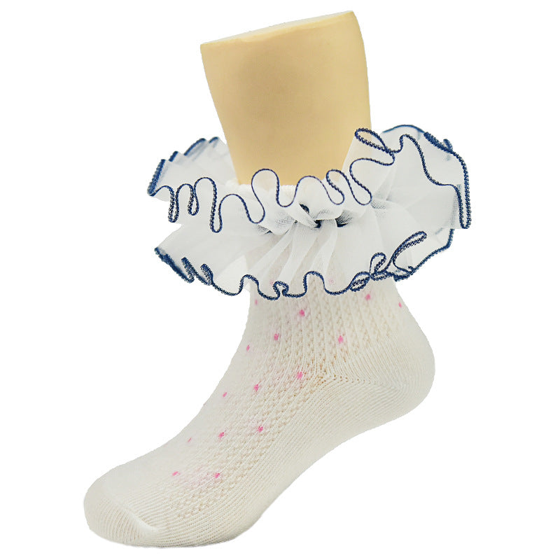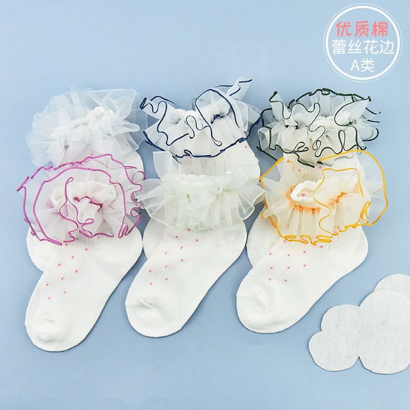 New children's lace socks real cotton wave point color three-dimensional lace lace socks baby baby socks children's socks