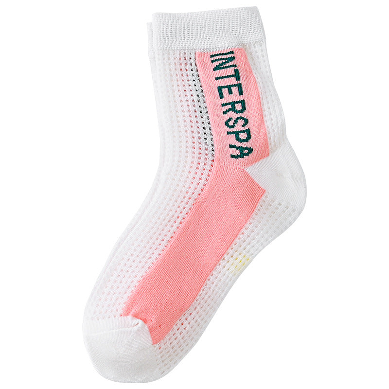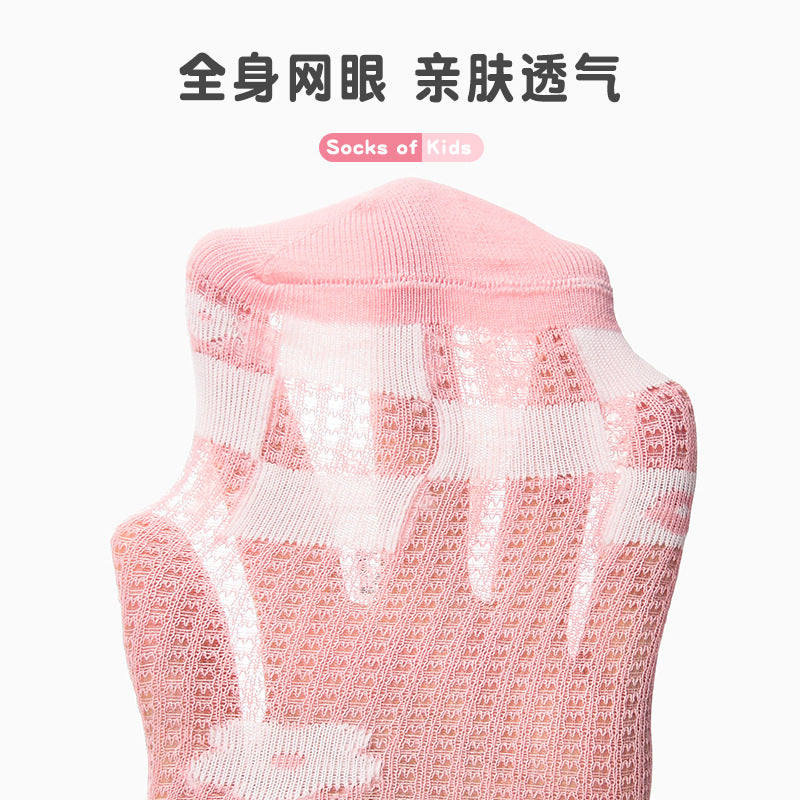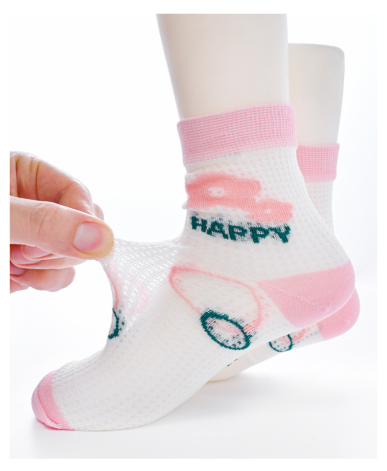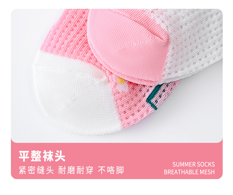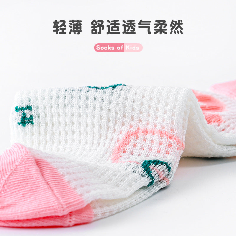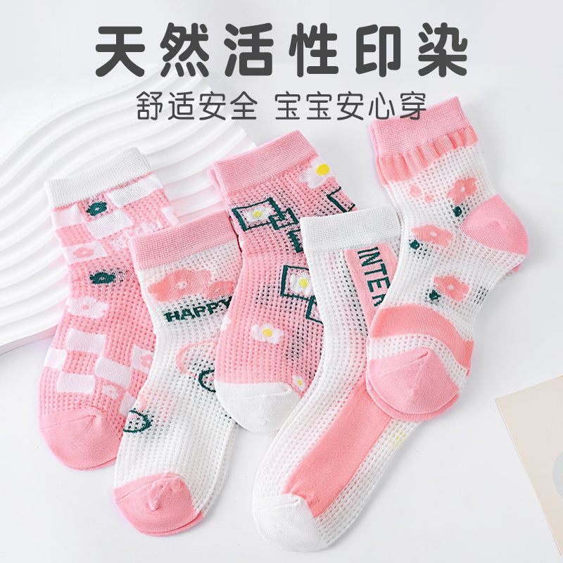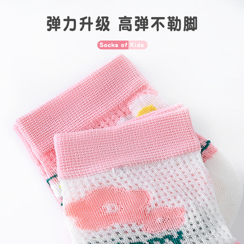 Pink flower children's mid-tube socks new cute baby cotton socks summer thin section breathable mesh mid-top socks