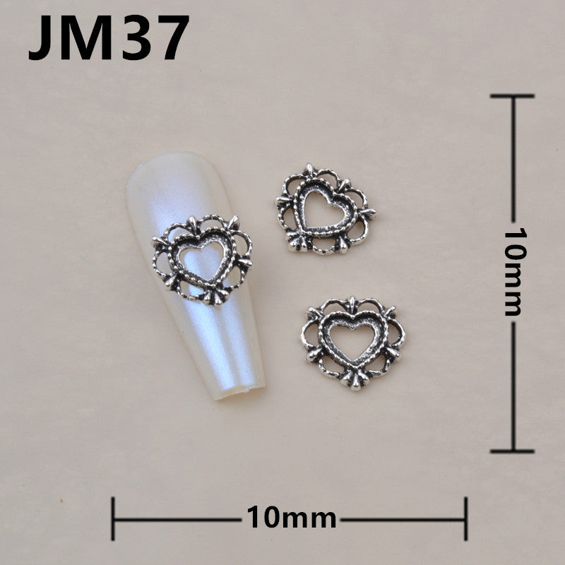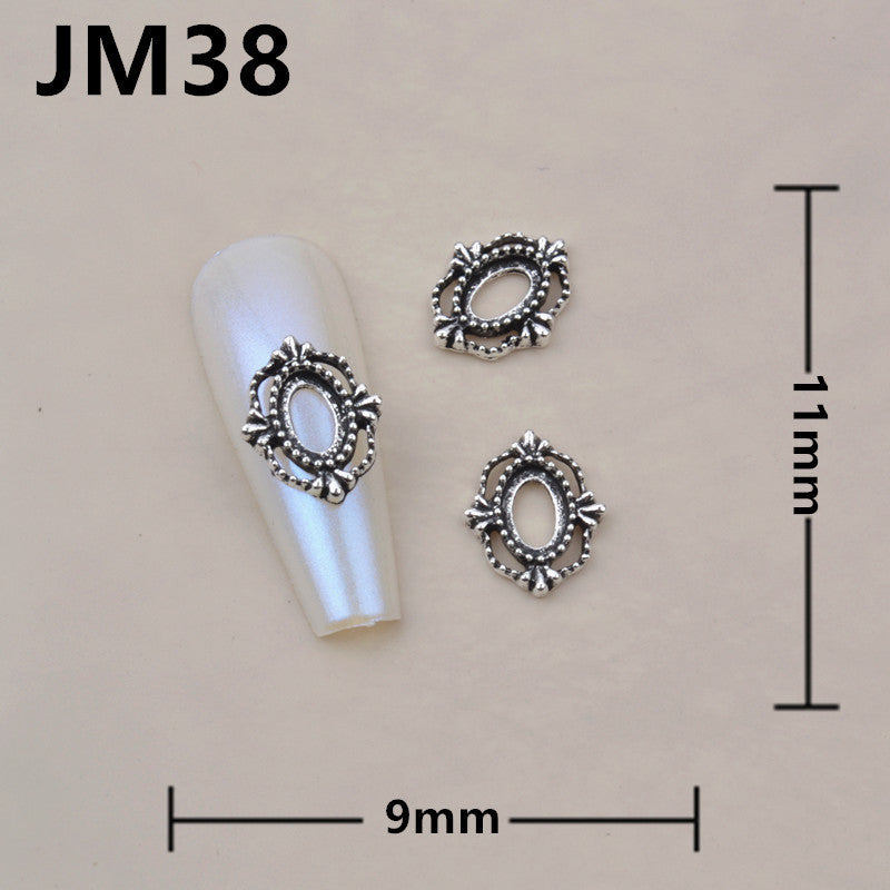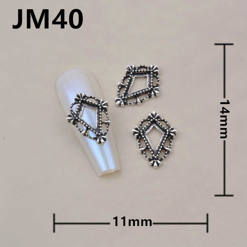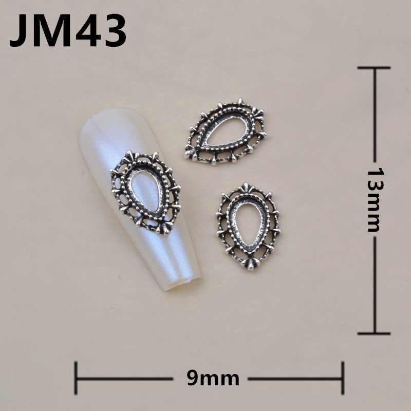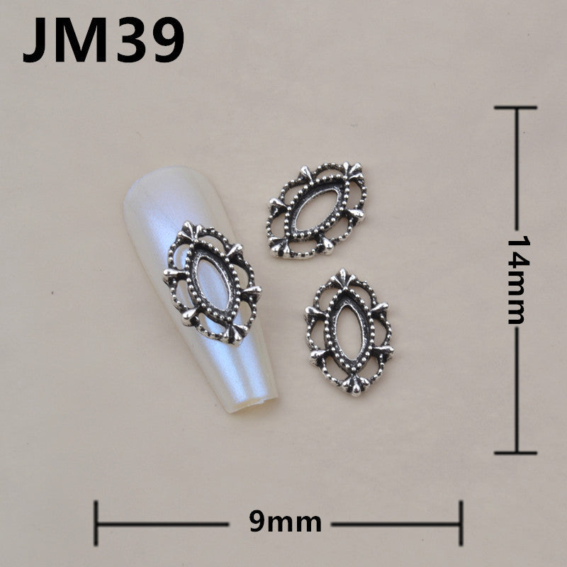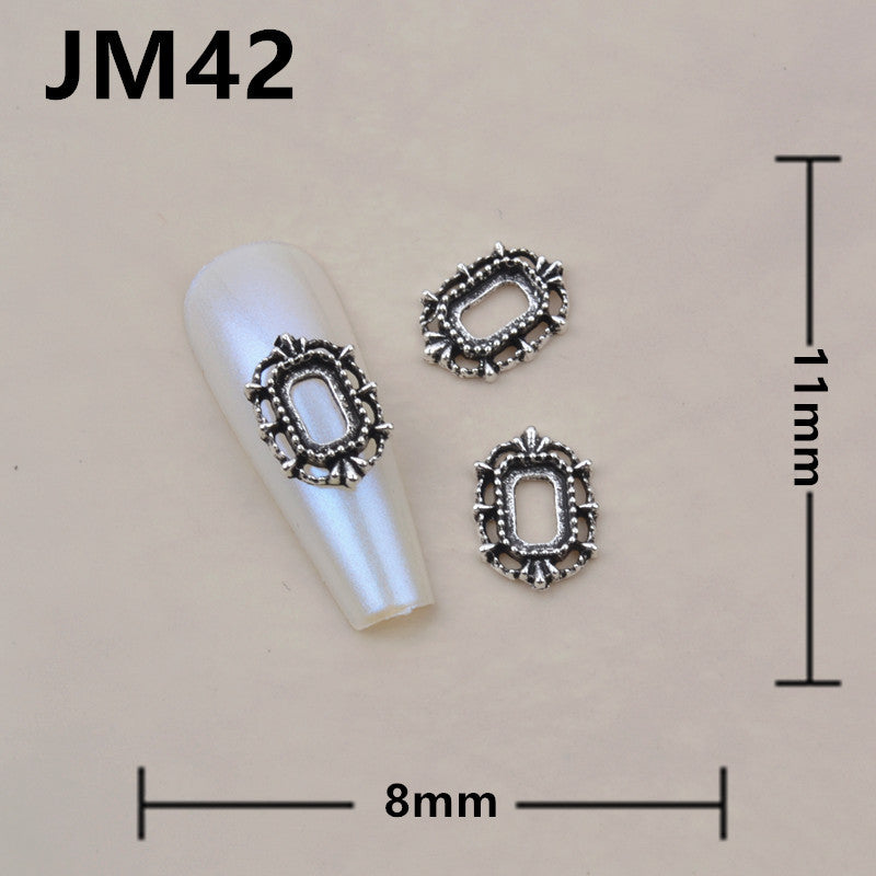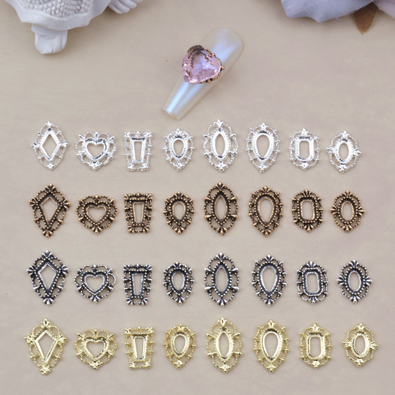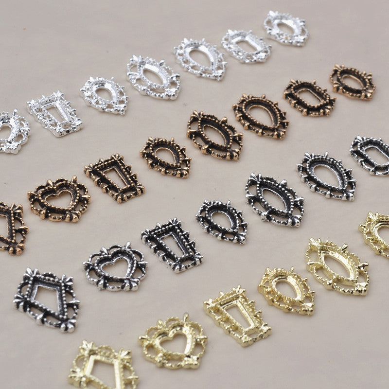 Retro baroque ancient silver almond peach heart octagonal border alloy metal frosted hollow photo frame nail art ornaments