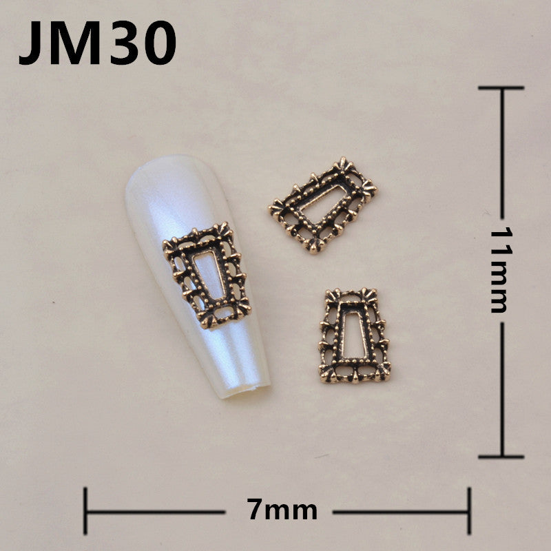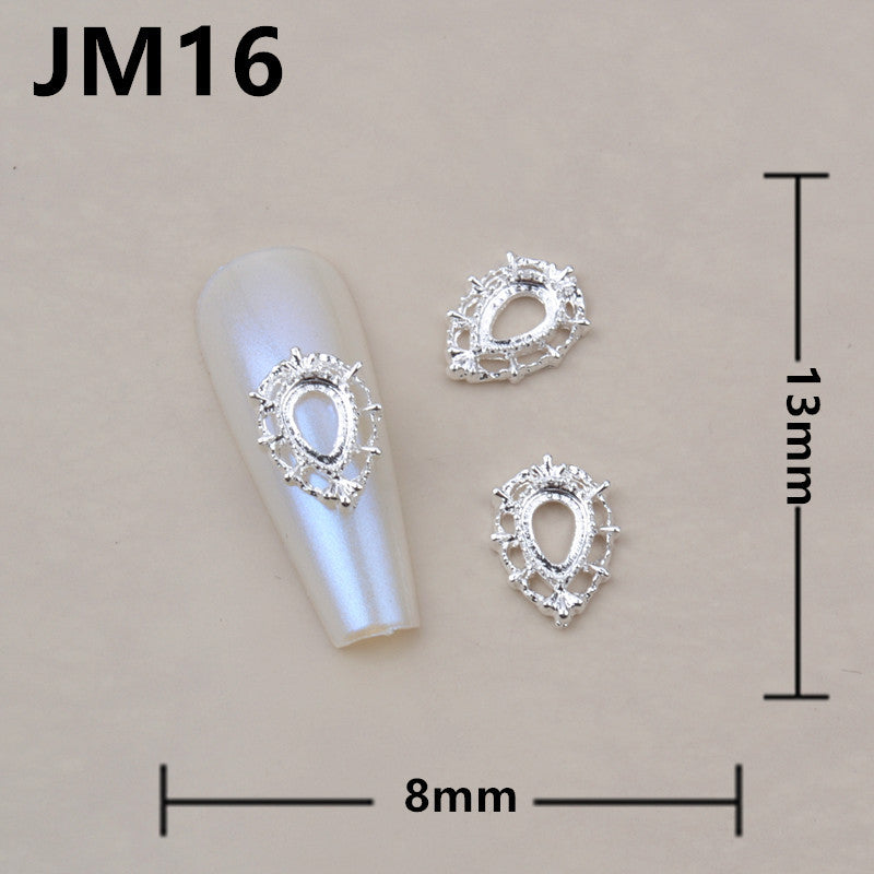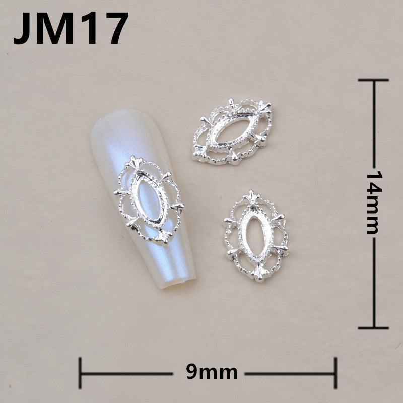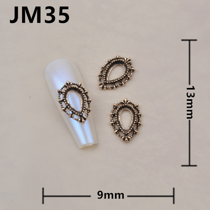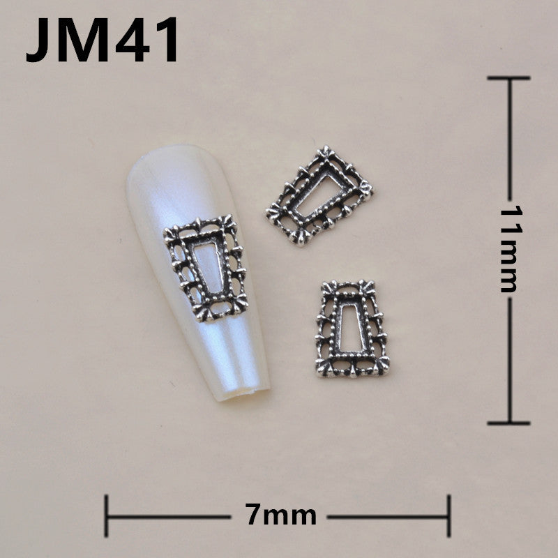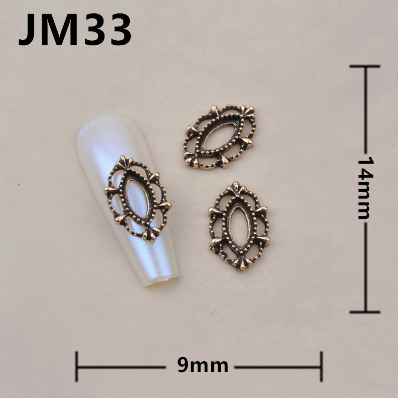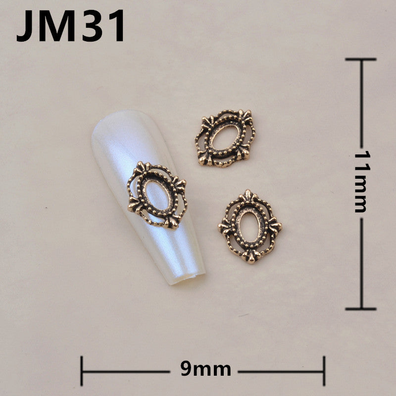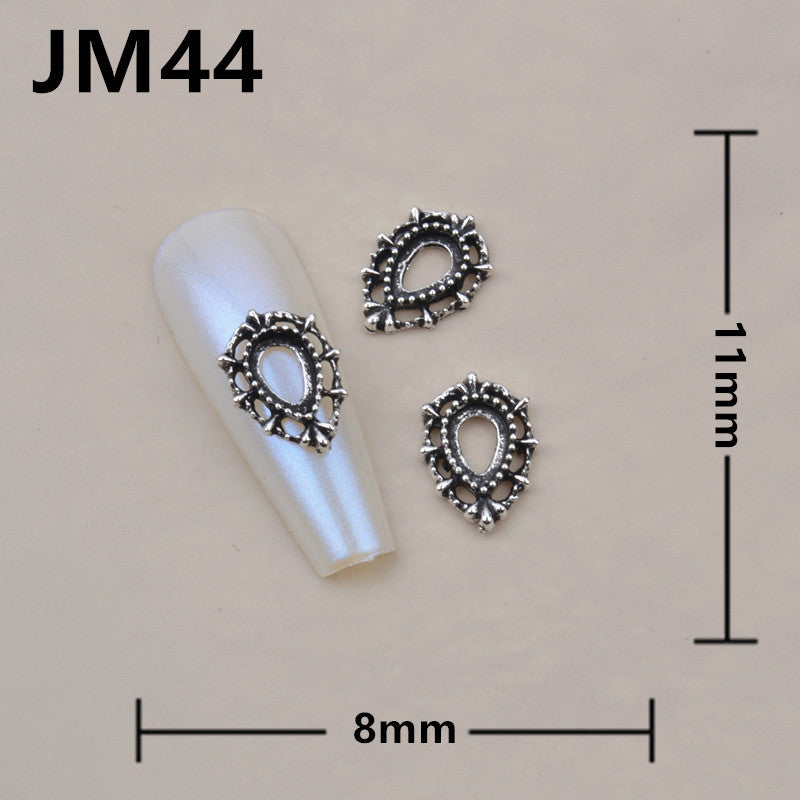 Retro baroque ancient silver almond peach heart octagonal border alloy metal frosted hollow photo frame nail art ornaments
