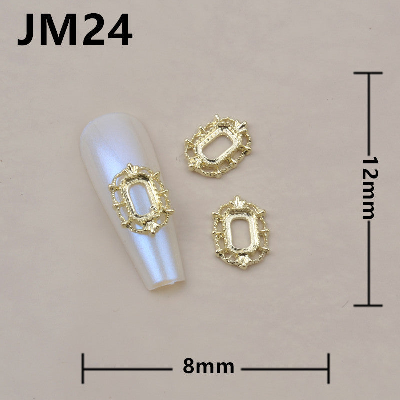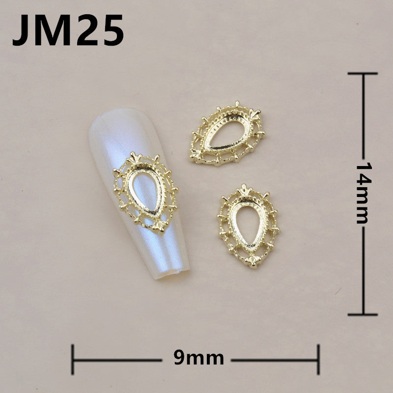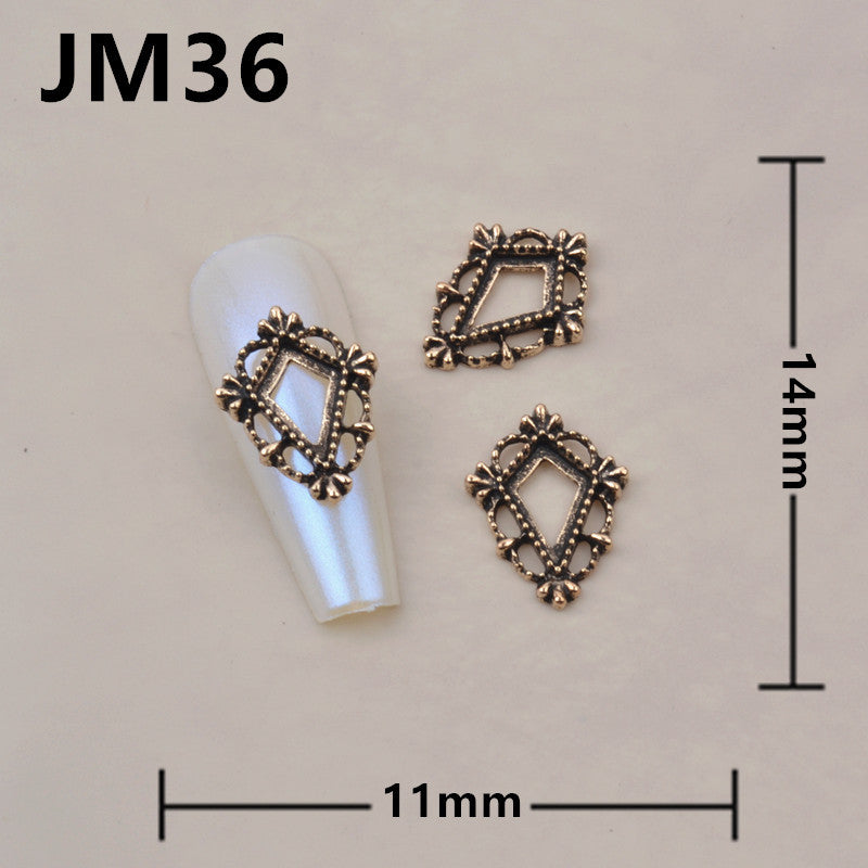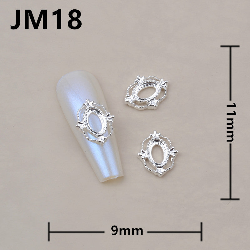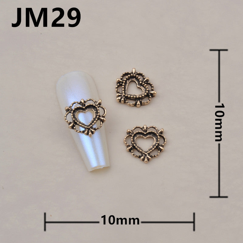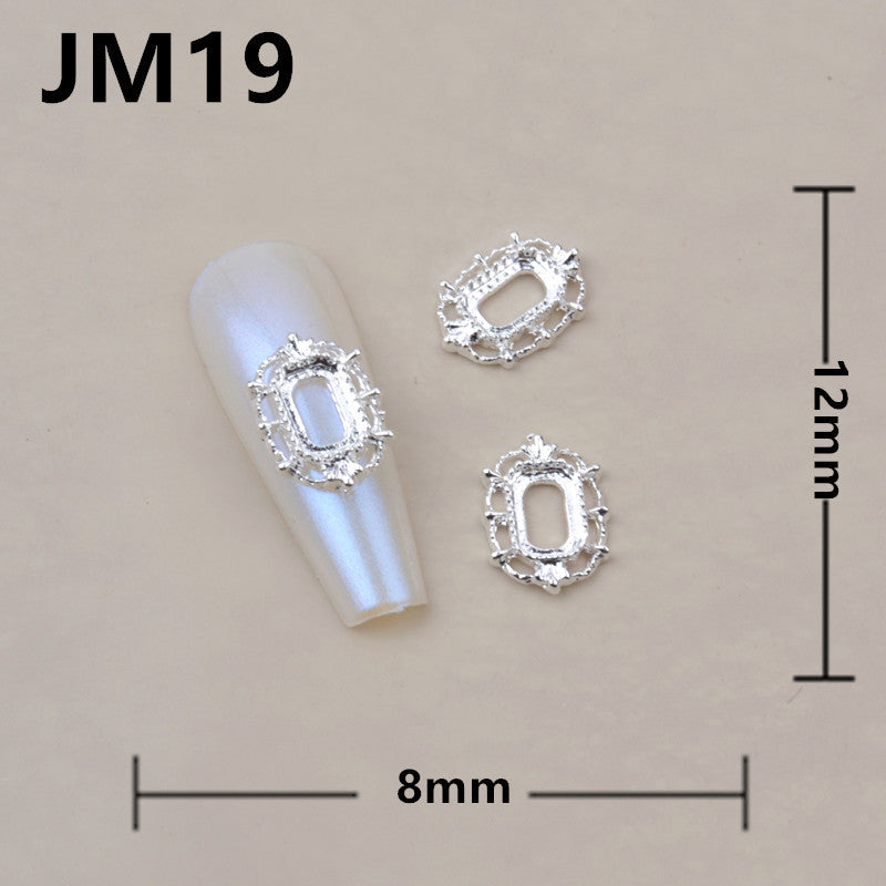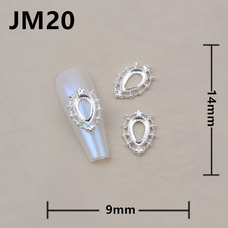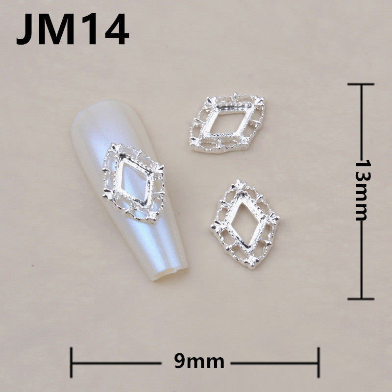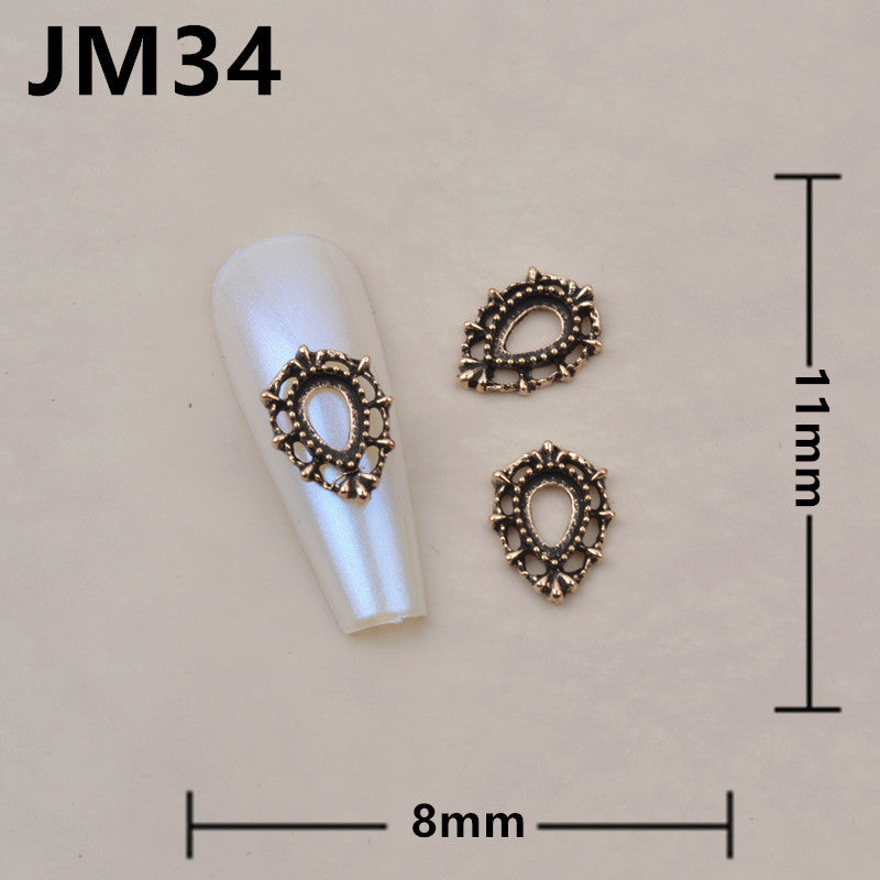 Retro baroque ancient silver almond peach heart octagonal border alloy metal frosted hollow photo frame nail art ornaments