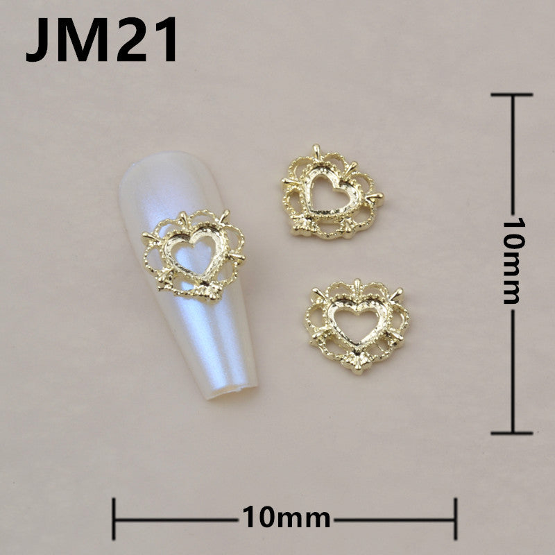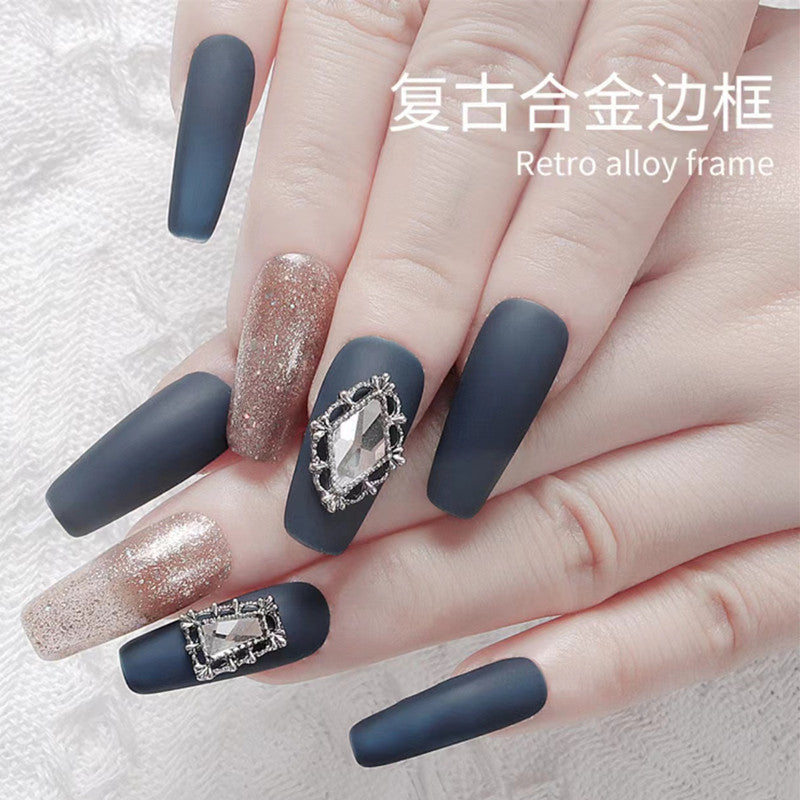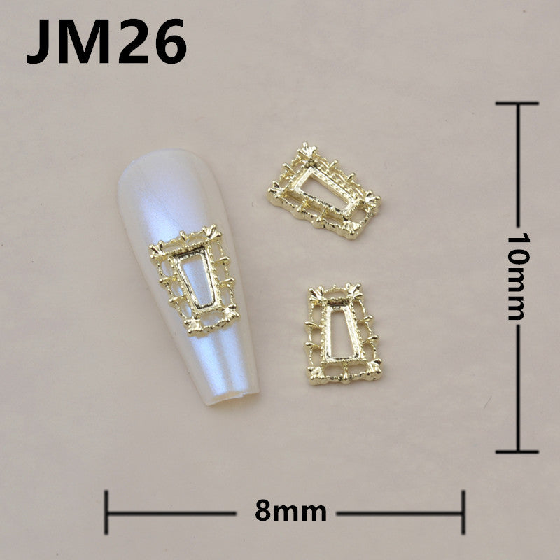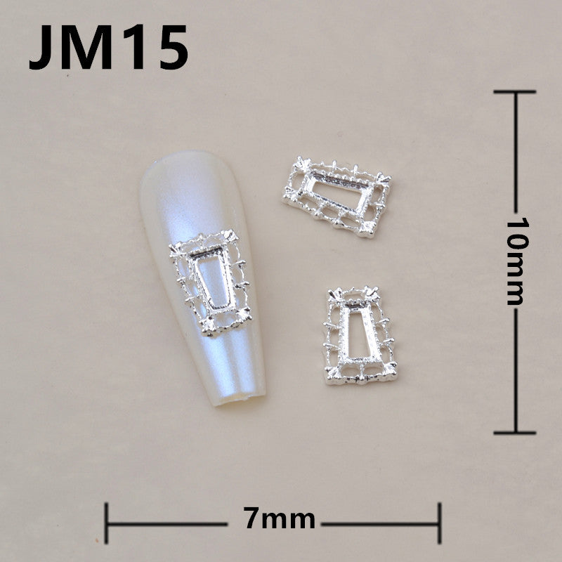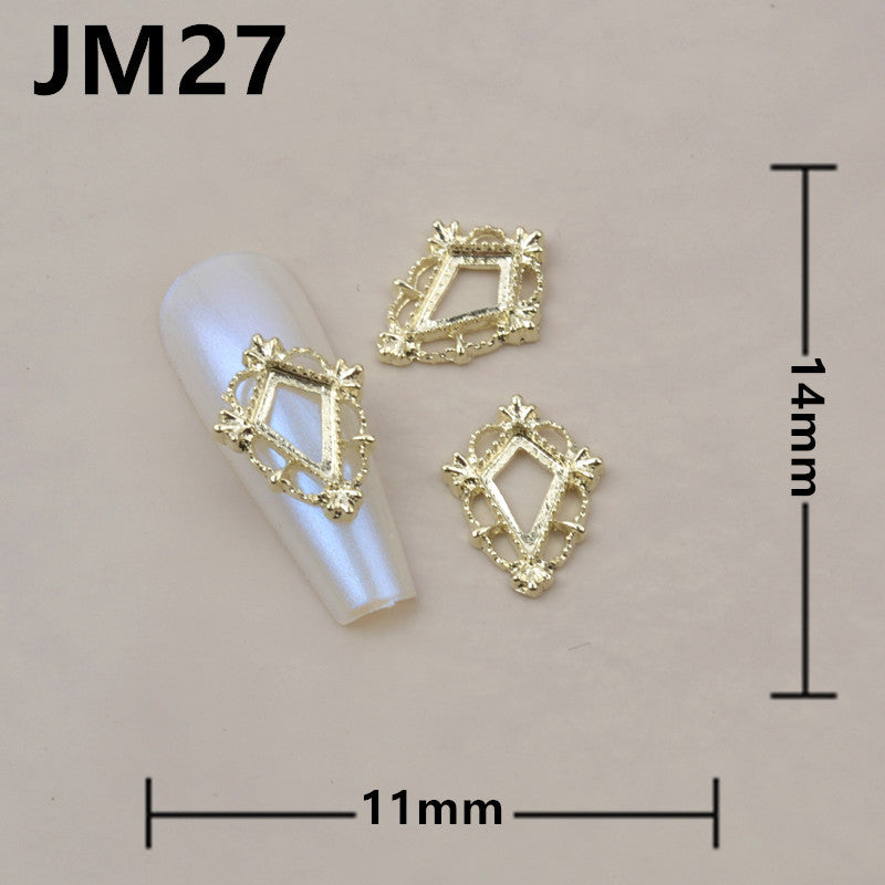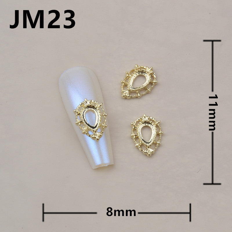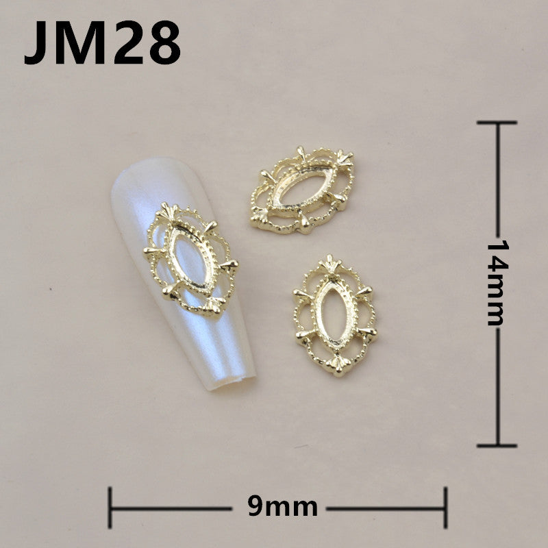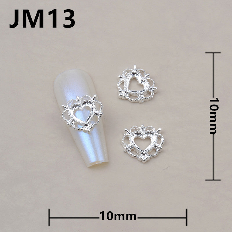 Retro baroque ancient silver almond peach heart octagonal border alloy metal frosted hollow photo frame nail art ornaments