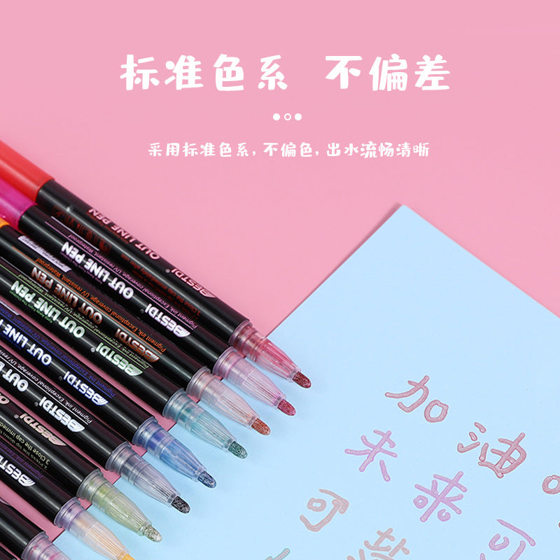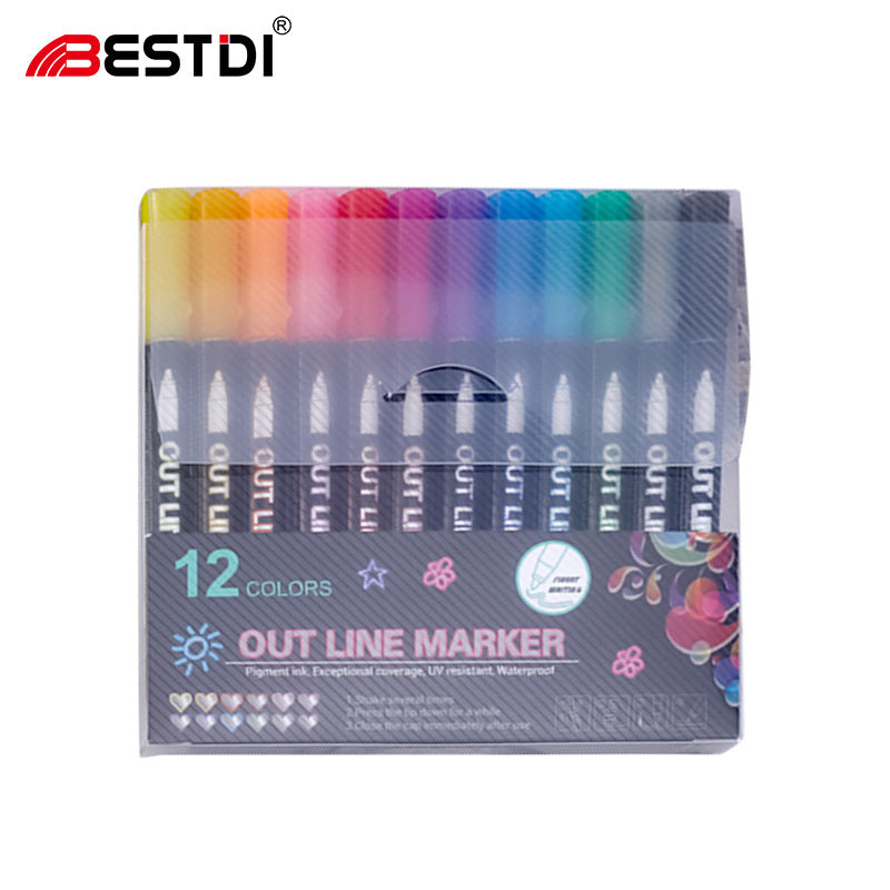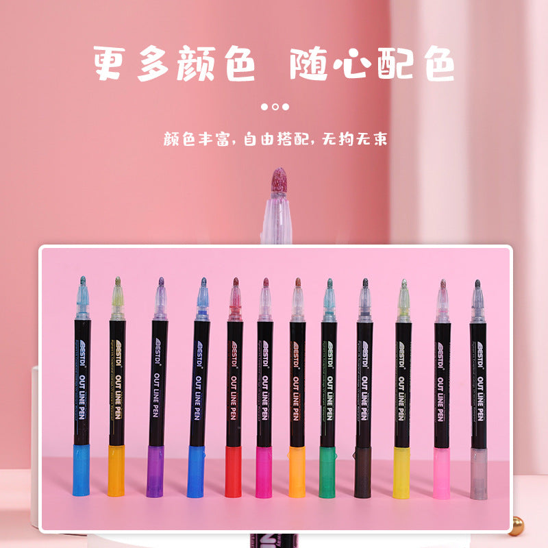 RM1547 outline pen 12 colors OUT LINE silver double line pen hand-painted Christmas greeting card marker pen
