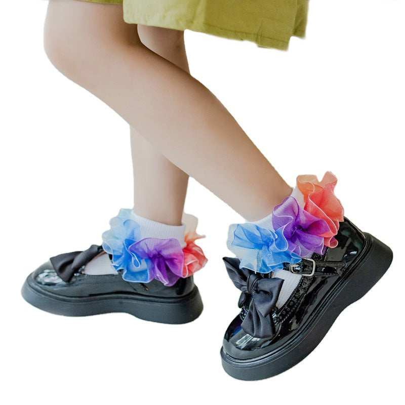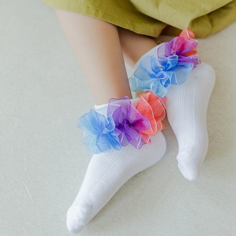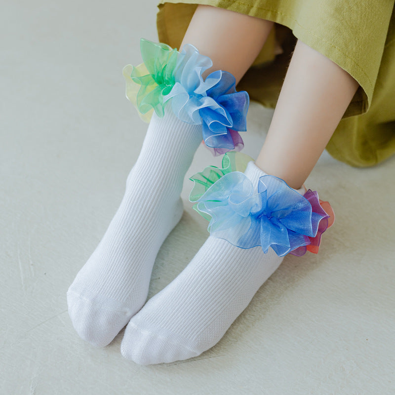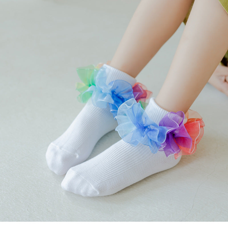 Spring and autumn children's lace socks combed cotton colorful three-dimensional lace lace children's socks girls baby dance socks