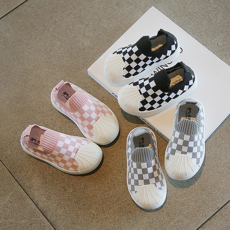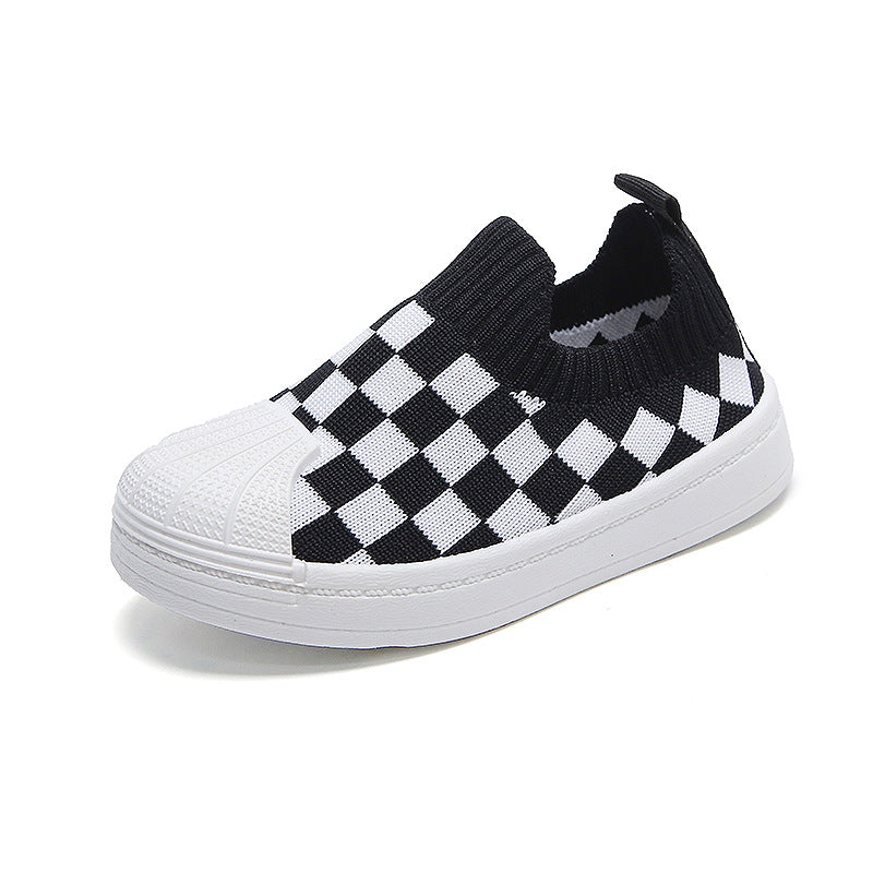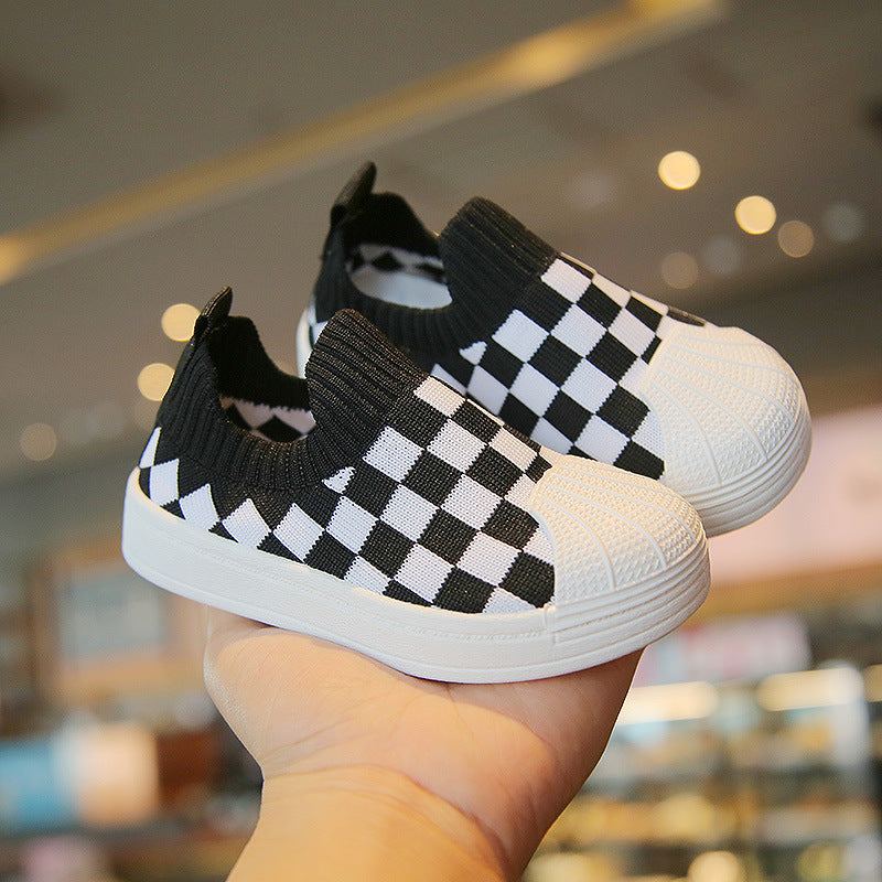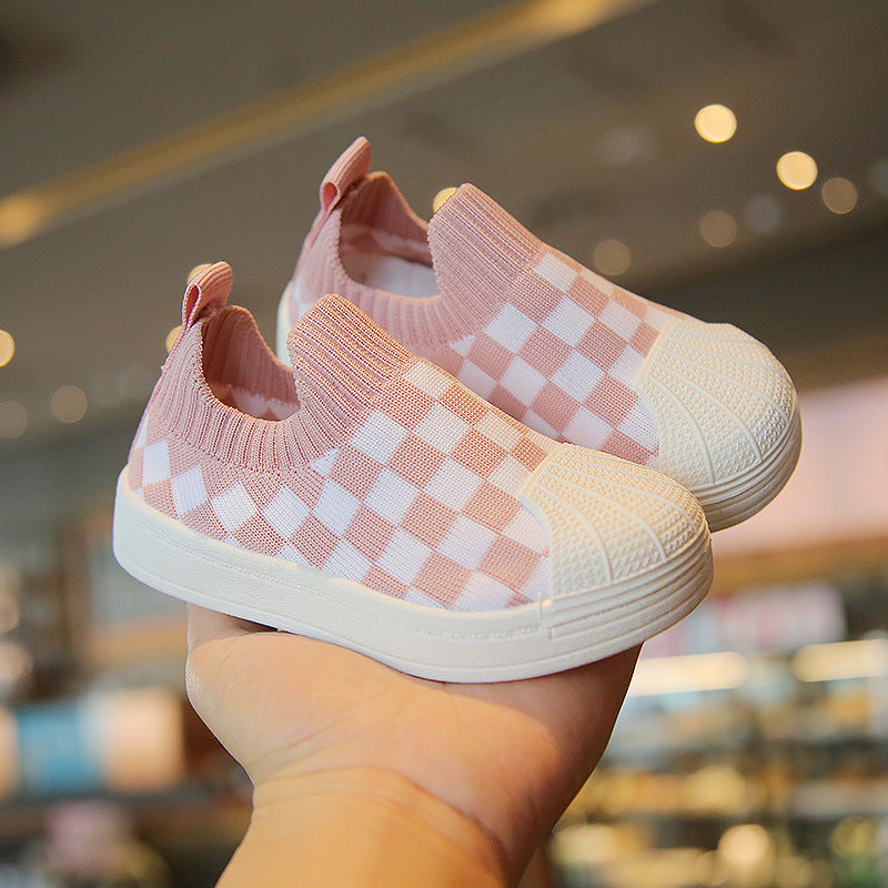 spring and autumn new children's soft-soled toddler shoes Korean version of girls' flying woven plaid children's shoes boys' baby shoes